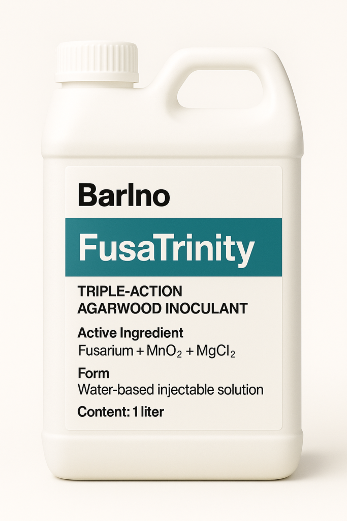 BarIno™ FusaTrinity™ is a next-generation agarwood inoculant system that combines biological, oxidative, and chemical induction mechanisms to stimulate rapid and high-quality resin formation in Aquilaria trees.