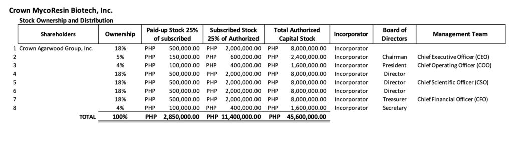 - Payment Method: Please issue Manager’s Check/Cashiers’ Check payable to Crown MycoResin Biotech, Inc. together with your Tax Identification Number (TIN) Card and Identification Documents (ID).